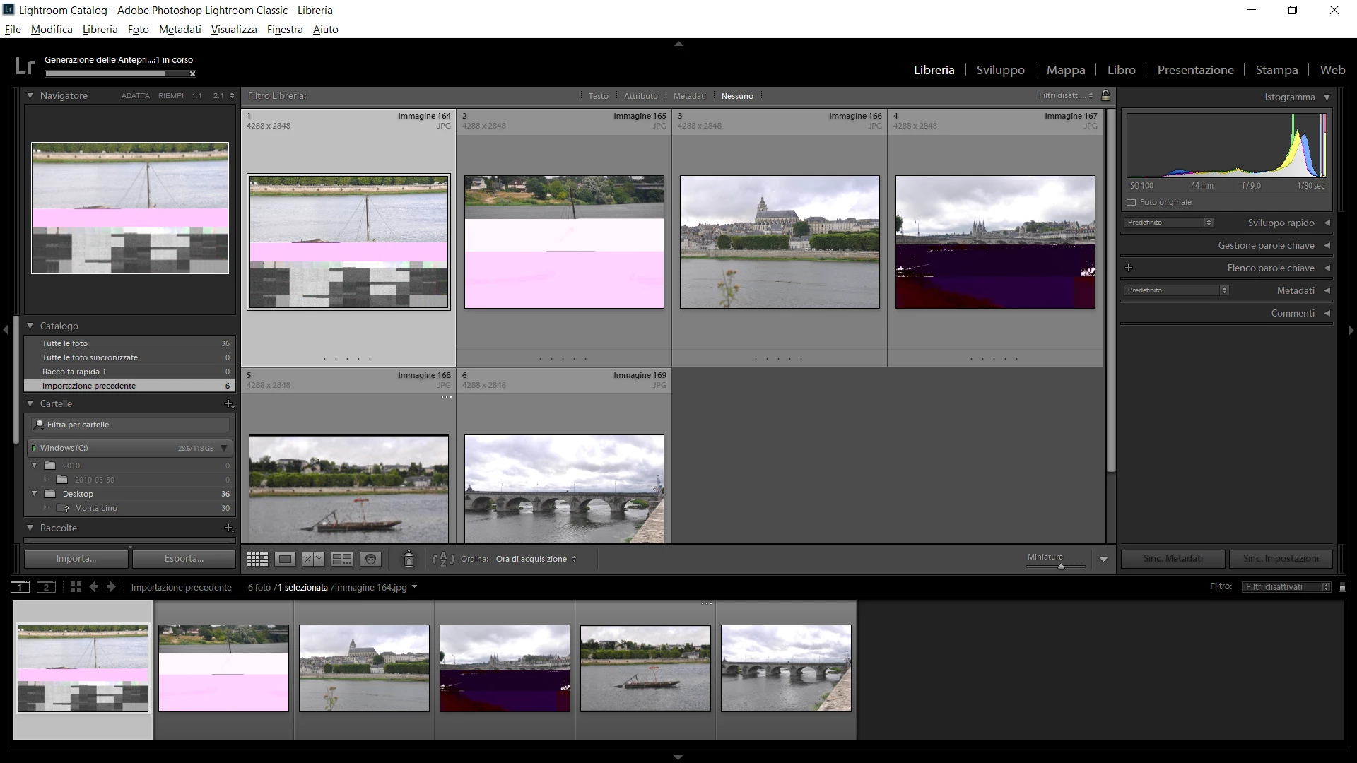 The weird part is that in Lightroom, before I import the files, in the program, shows the files with no corruption at all, as you can see in the image below:
