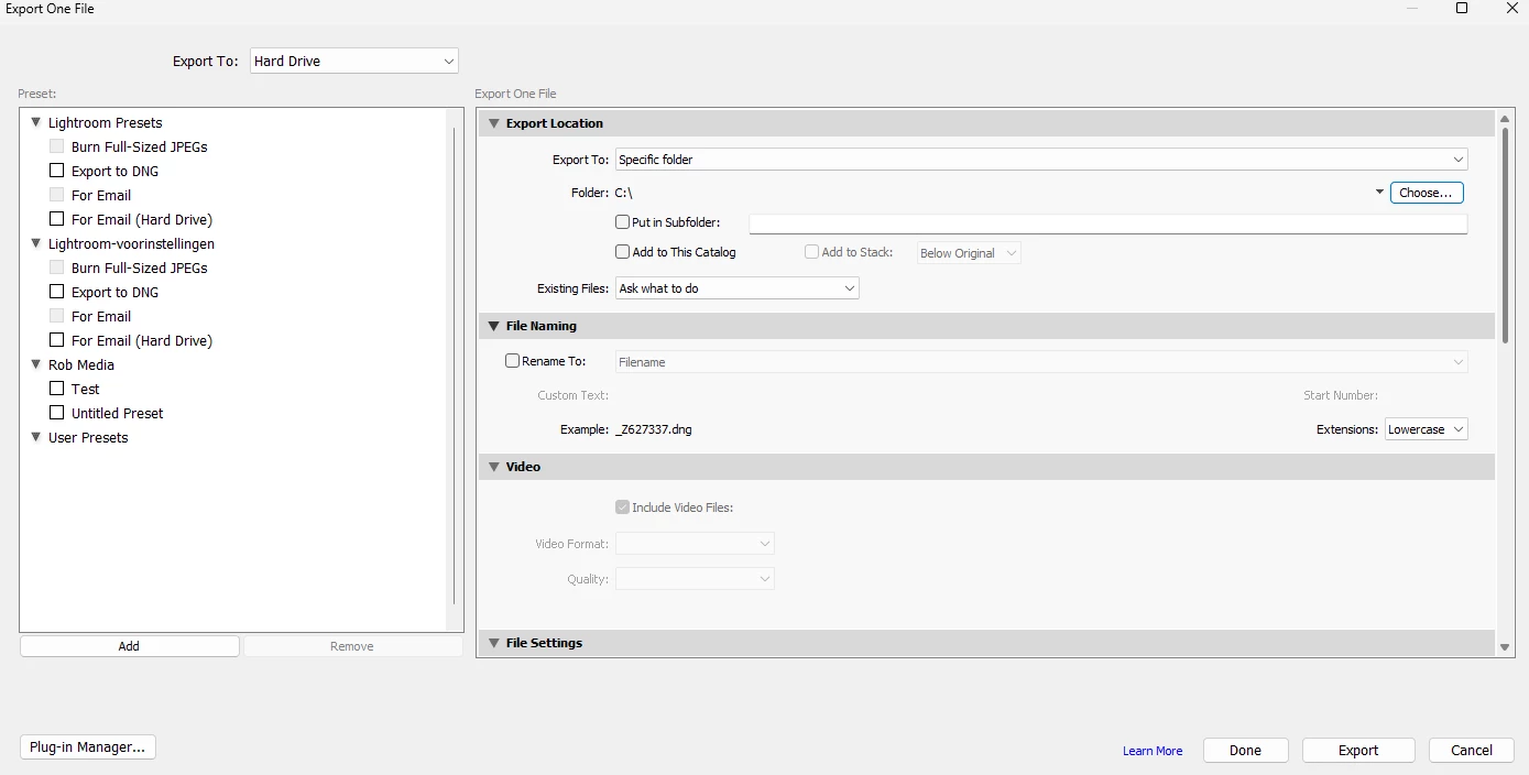 File settings not showing up in export tab
