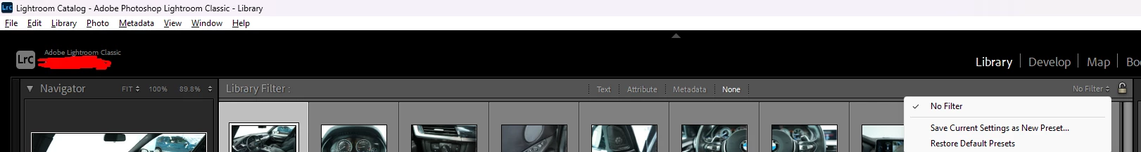 Filter option in Library (top bar)