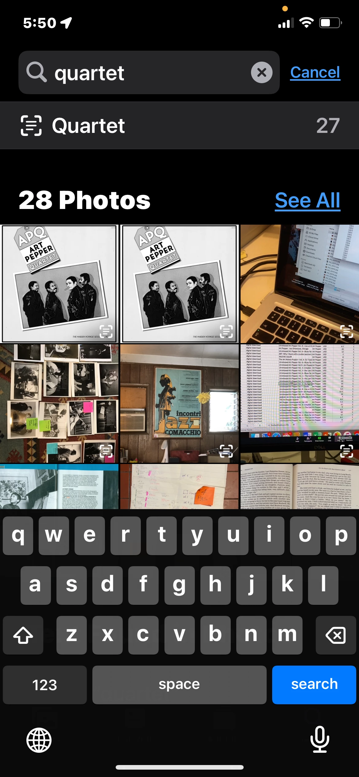 I'm blown away. I was searching for a photo by name in "iPhoto" or "photos" or whatever apple is calling it on my iPhone these days. The word I was looking for was "press". Not only did it find an image of a press pass but it found the word "press" WITHIN the image. I mean it was highlighting the WORD inside the image. So I searched for the word "quartet " and it found an image of a poster. The word "quartet" was not in the NAME of the image. The app found the word "quartet" actually in the .jpg snapshot of the poster. It read the image.