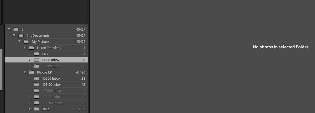 However, I have a set of folders that I use to stage images that I download from the camera prior to import. I can't get LrC to display all of the folders and image files that are in these folders in the folders panel - one of the subfolders shows up, two folders (both with image files) have their names show up but they are grayed out and their subfolders won't display), and three subfolders also there will  not show up in the folderspanel at all.