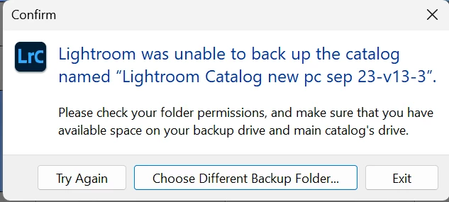 So I thought maybe I just look at an earlier version, and then I get asked to back up - and that is not working either (see screenshot). I looked here in the forum, but I can't seem to find the answer. Short of re-importing all those folders and starting work on them again, I am at a loss. Oh, and I have plenty of space ... so not sure why that would be an issue.