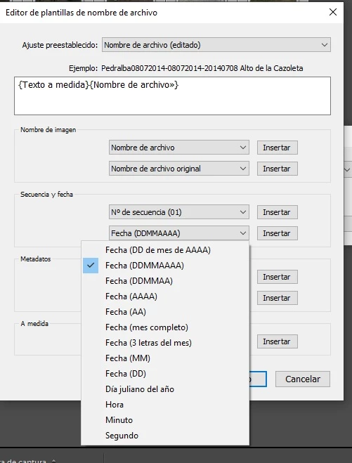 Porque Lightroom no permite poner la fecha, a la hora de cambiar nombes de archivos, en formato AAAAMMDD? Adobe Bridge si lo hace.