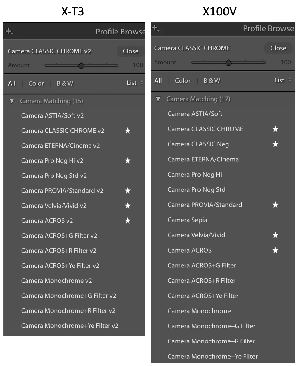 Hi, why Fujifilm X100V doesn't have v2 camera profiles, that is made for X-Trans 4 products?