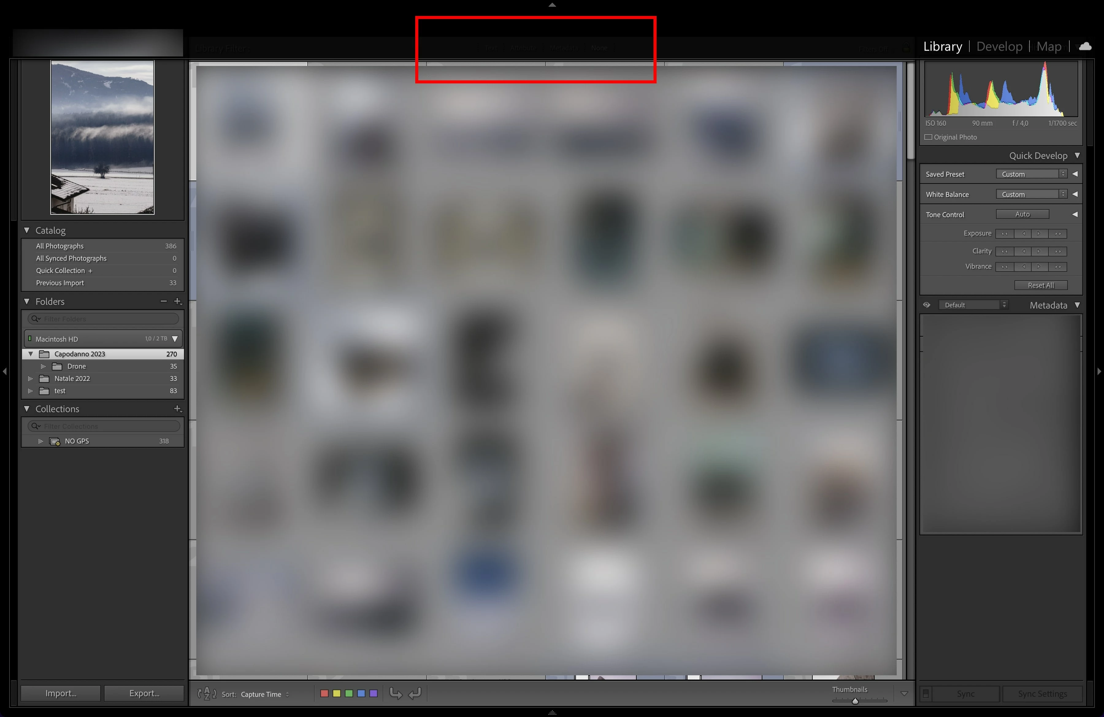 I have a MBP 14 with M1 max and with the latests version of Lightroom when launched in full screen mode (i use this mode 100% of the time) the top filter bar and the top part of photos are hidden by the top bar.
