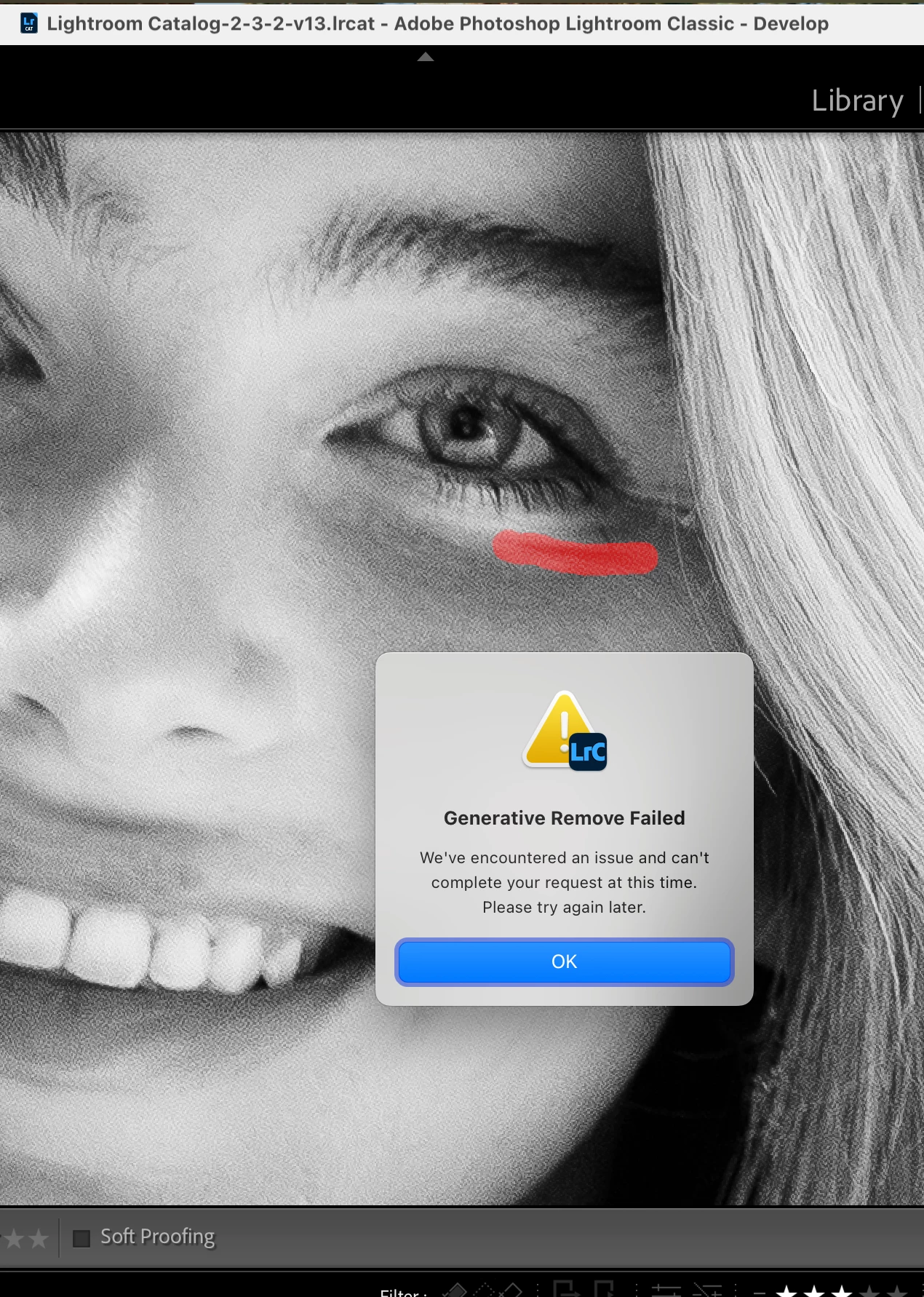 When I start working on an image on a new day/the following day, I get the “generative remove failed” prompt. It just stops working for whatever reason. I always have to restart my computer in order for it to start working properly again. My current workflow is on a 2023