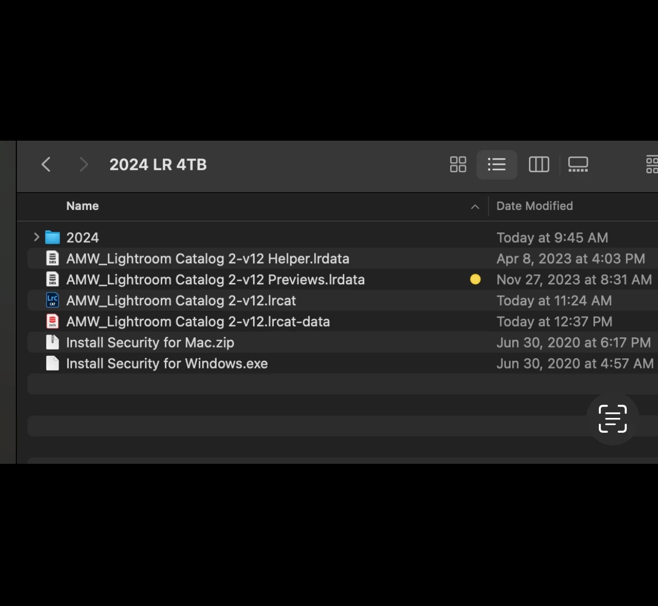 “The finder cannot complete the operation because some data in “AMW_Lightroom Catalog 2-v12 Previews.lrdata can’t be read or written. (Error code -36)”