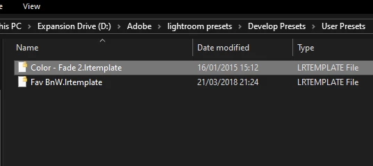 The problem i'm having is i recently bought a new computer, on my old computer i copied the "Develop Presets" folder to an external drive.