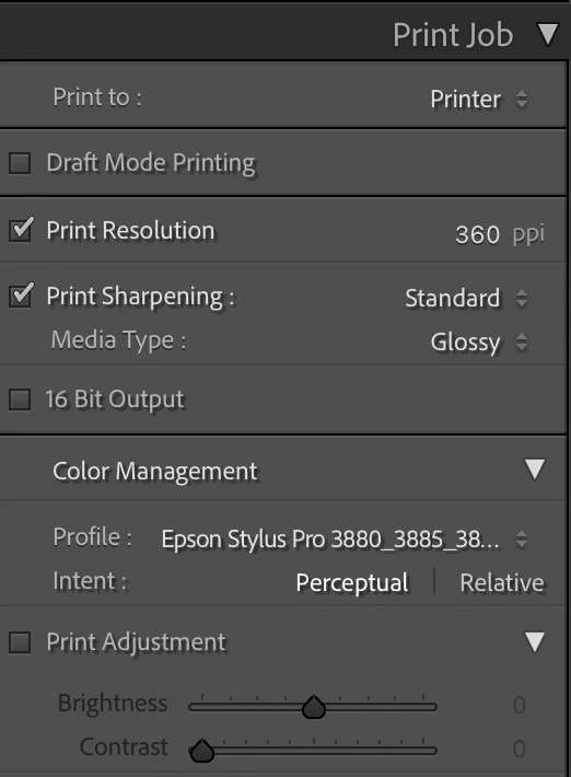 Lightroom's Print Job Panel: