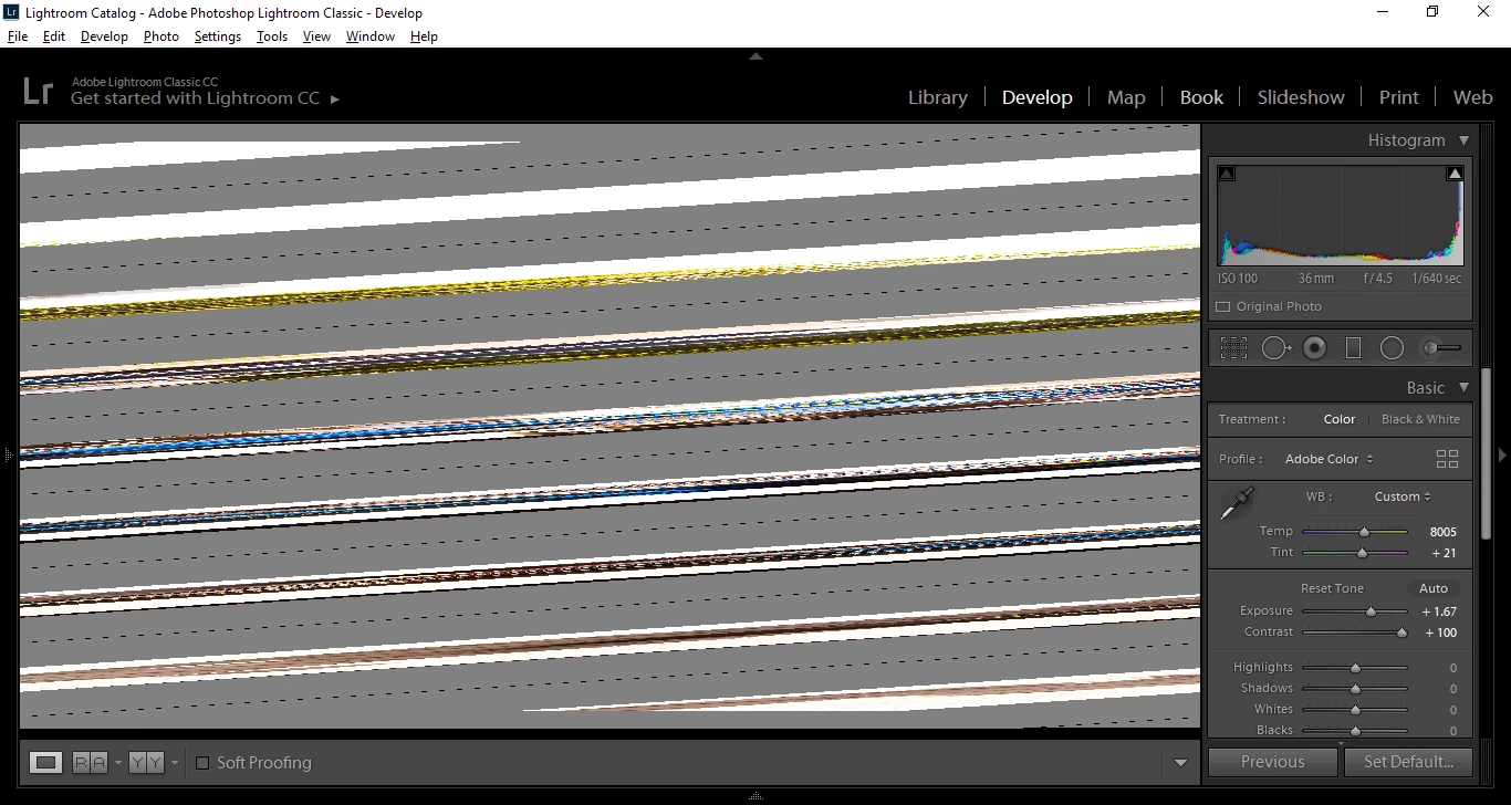 glitched photos in develop bar