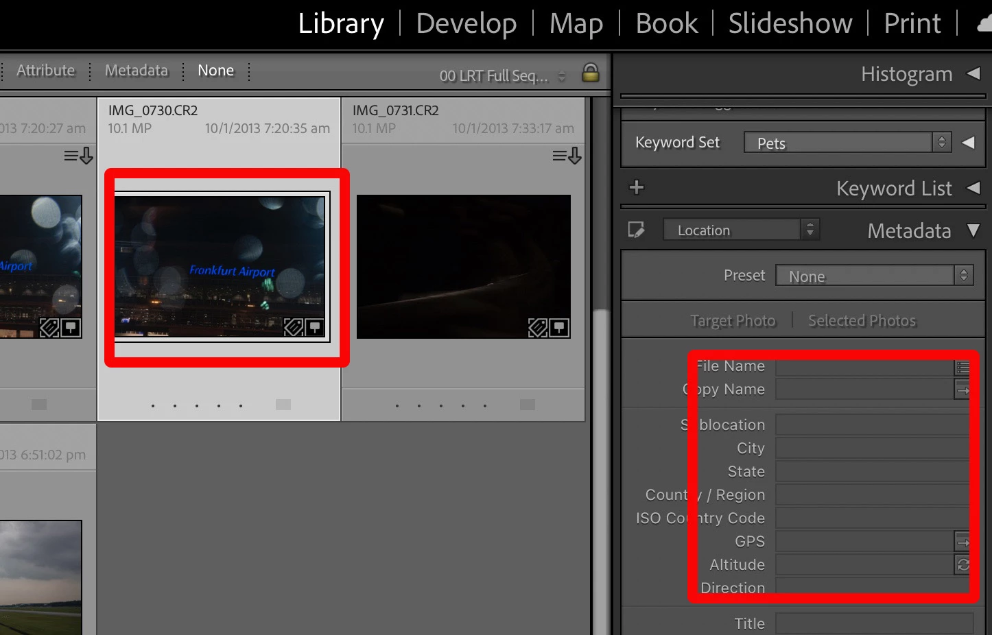 GPS co-ordinates not showing in Library