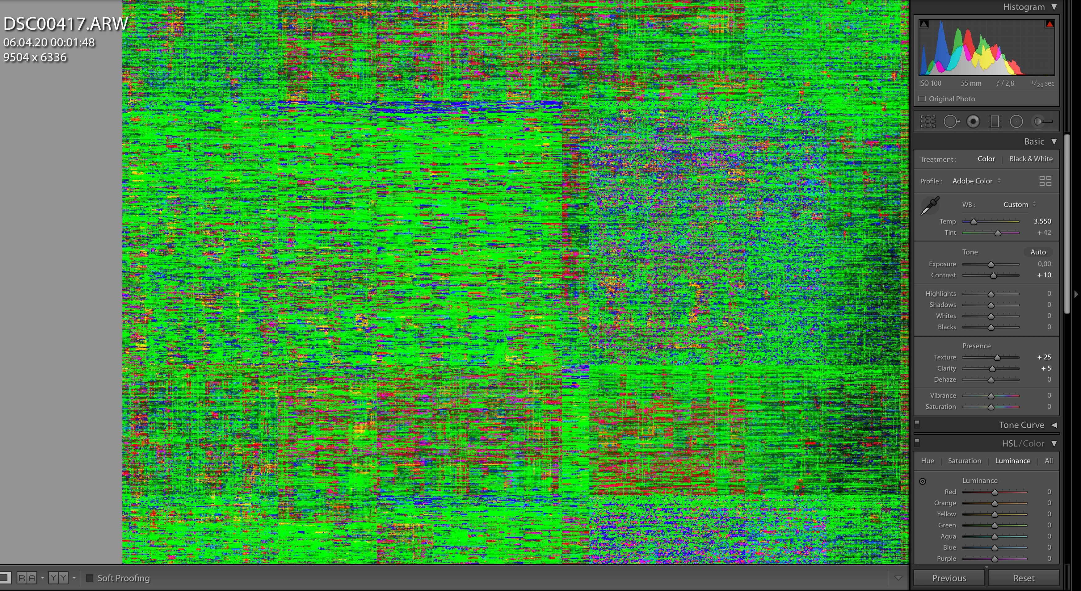 After a lengthy export job coming back to my Computer to discover that the preview was ... looking interesting to say the least (see attached screenshot). You can, if you know what the image is supposed to look like faintly detect patterns from the original image in the mess. The source files are not corrupted, Smart Previews are not used and I have cleared the Camera Raw cache.