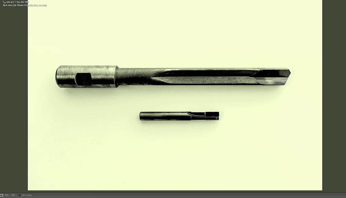 Recently, Lightroom has become unusable for me due to GPU-related issues. Images in the Develop module appear dark and green. Even the image background, which should be gray, is green. The photo shows drill bits photographed against a white background.