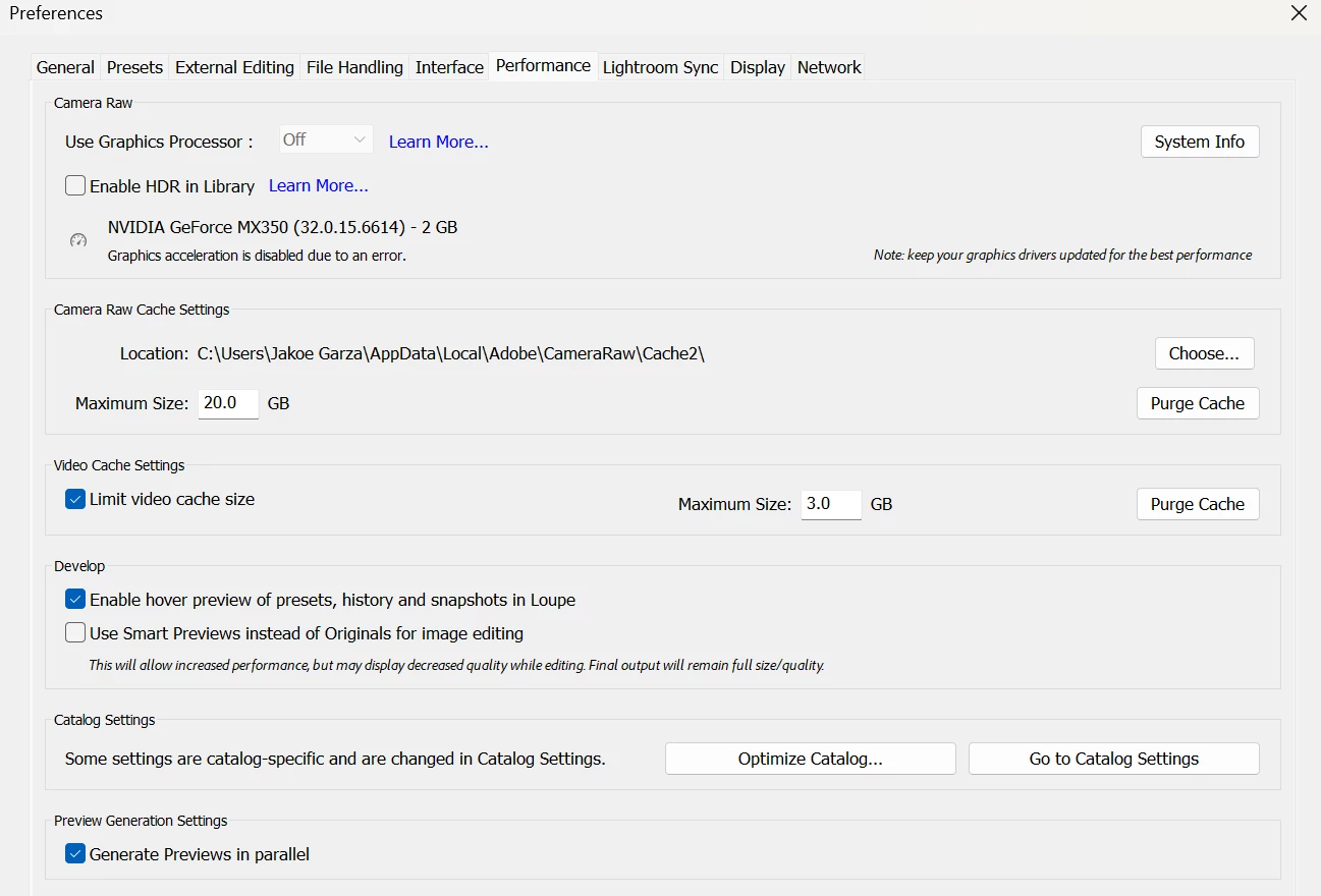 Settings Folder: C:\Users\Jakoe Garza\AppData\Roaming\Adobe\Lightroom