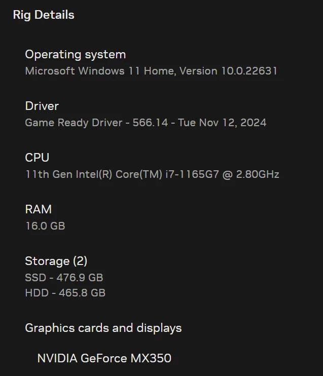 DirectX: NVIDIA GeForce MX350 (32.0.15.6614)