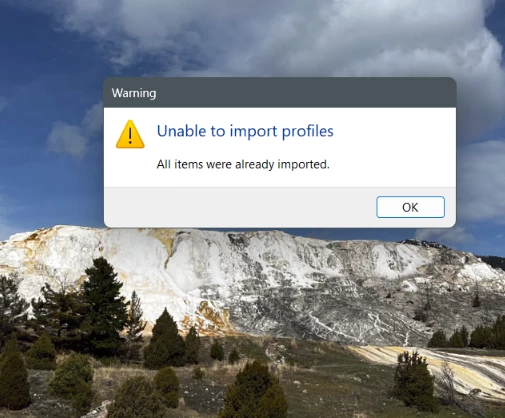 Due to LR being incredibly buggy I chose to reset my preferences instead of constantly restarting the program. As part of the reset it deleted all my custom import profiles. When I went to go re--import them I got this error "Unable to import profiles All items were already imported". So I went back to the tab and checked the manage profiles to make sure everything was checked that should be. The profiles were just not in any of the profile headings and were not under legacy either. I tried restarting, still no joy. The profiles are in the proper locations" C:\Users\XXXX\AppData\Roaming\Adobe\CameraRaw\CameraProfiles and in C:\ProgramData\Adobe\CameraRaw\CameraProfiles. They were working just fine before this. Any suggestions about how to get them back?