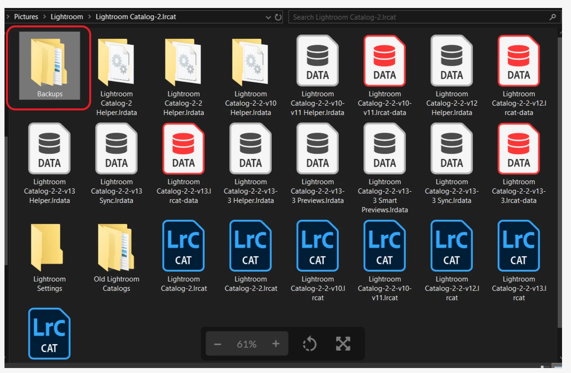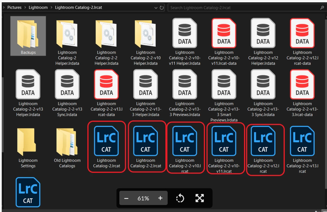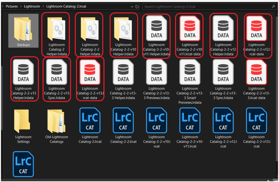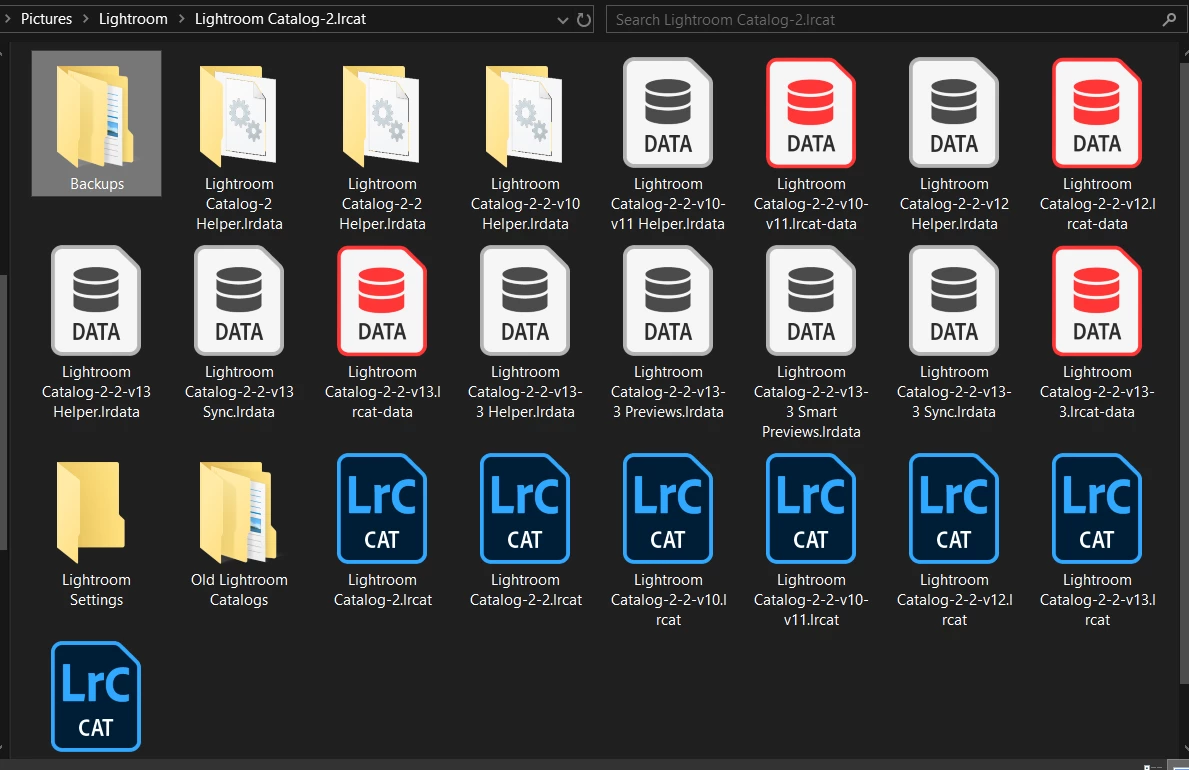 1) (Please see attached screen shot of my Catalogue) Why is my Catalogue folder so full of files? It's also 107GB in size. Is this overlap from the various moves to different computers? Can anything be safley deleted from here? Any suggestions to reduce the size greatley appreciated. Any videos I've seen of others Cat folders have just one cat file inside not this big mess!