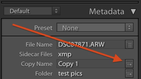 You can click the arrow button to the right of Copy Name in the Metadata panel: