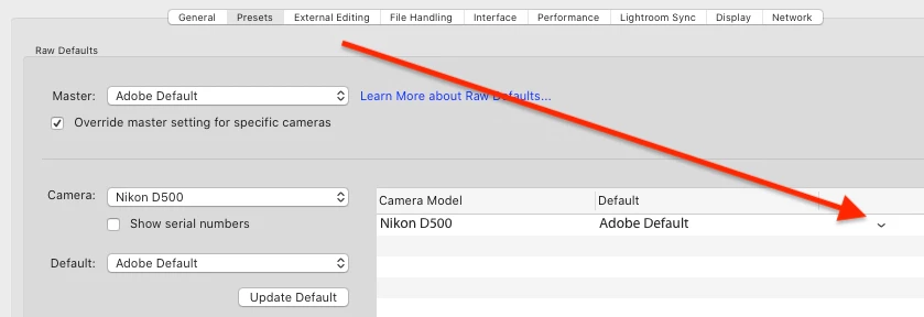 Opened Bridge, grabbed an image from the camera I want (Nikon D500), set the profile to Camera Standard (my standard profile), then clicked “Presets” and opened the New Profile popup by doing Alt/click on the icon next to the trashcan at the bottom.