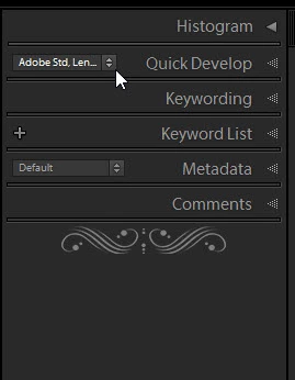 In the Quick Develop panel, click the drop-down menu for "Saved Preset"