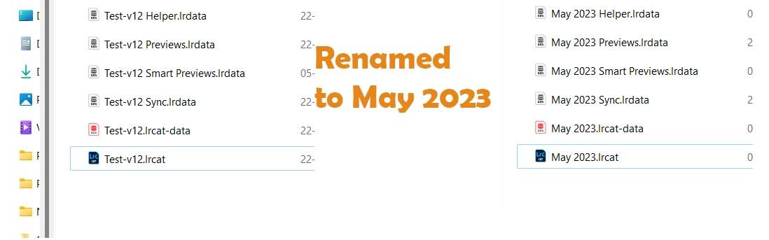 I am on a Mac [Monterey] and using LrC and named a catalog incorrectly "Family Images" - I'm going to want to change that name and gather it's mainly something I can do in Finder which is fine = but wht about all the other similarly named items inside the folder:  I certainly can do that in Finder but was afraid of doing so without really knowing what I am doing .  Thanks.