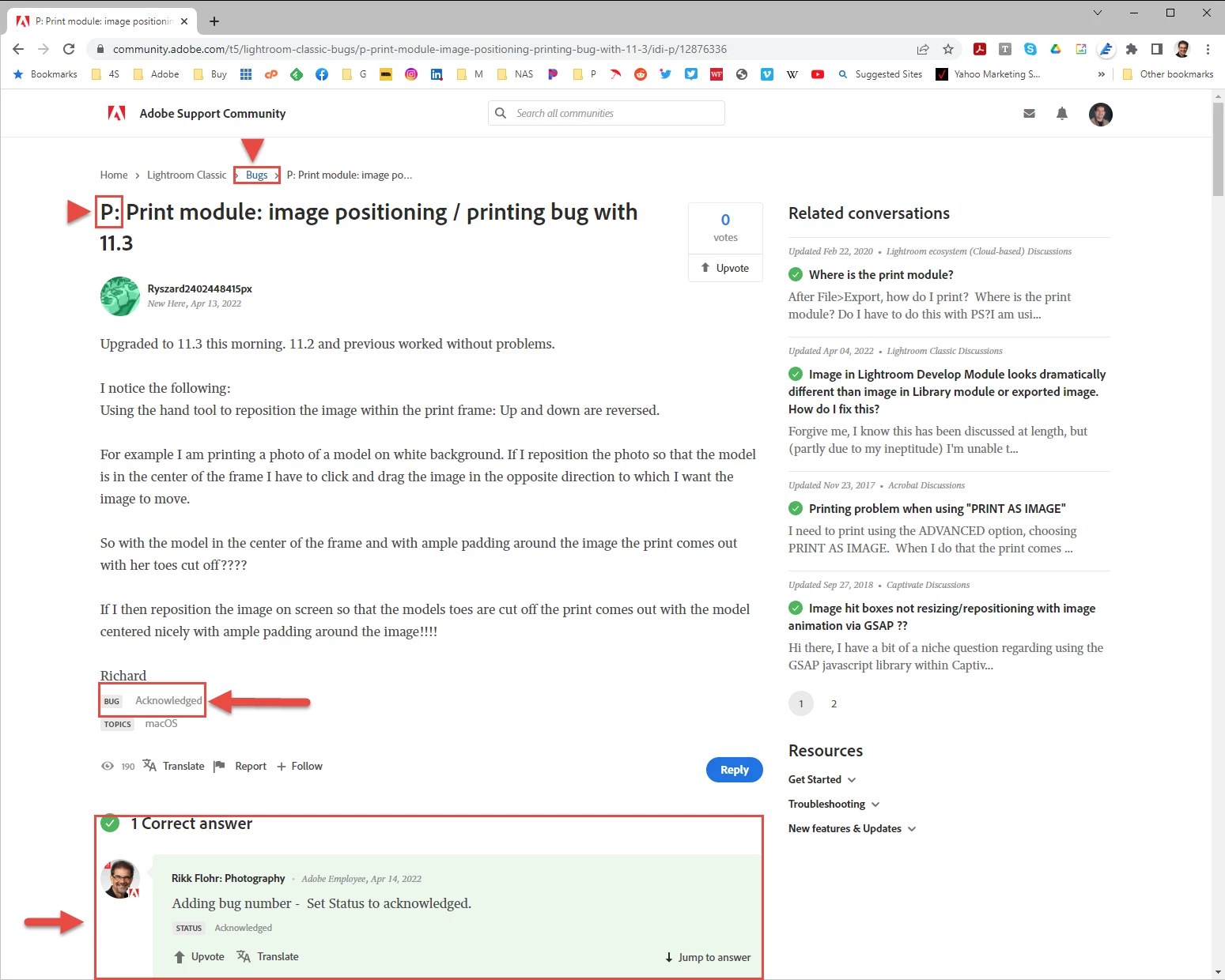 How do we know if Adobe has Acknowledged a Bug in LRC?