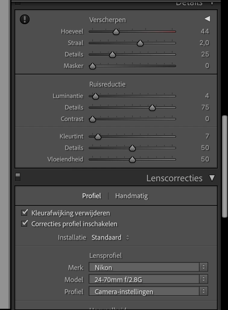 > the amount of adjustments vary from photo to photo, on one photo the noise reduction is higher than on another photo, the same with other adjustments.