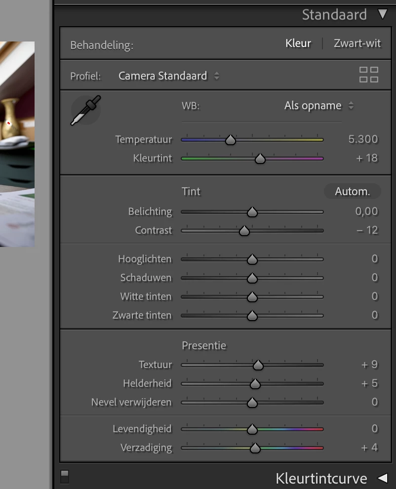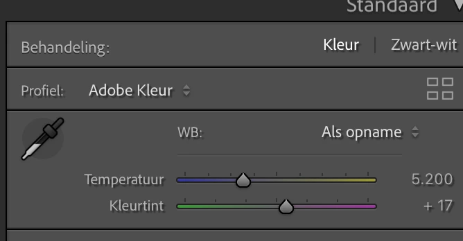 Then I adjusted the RAW standard settings and indicated that the Adobe Standard should be followed (cfr screenshot).