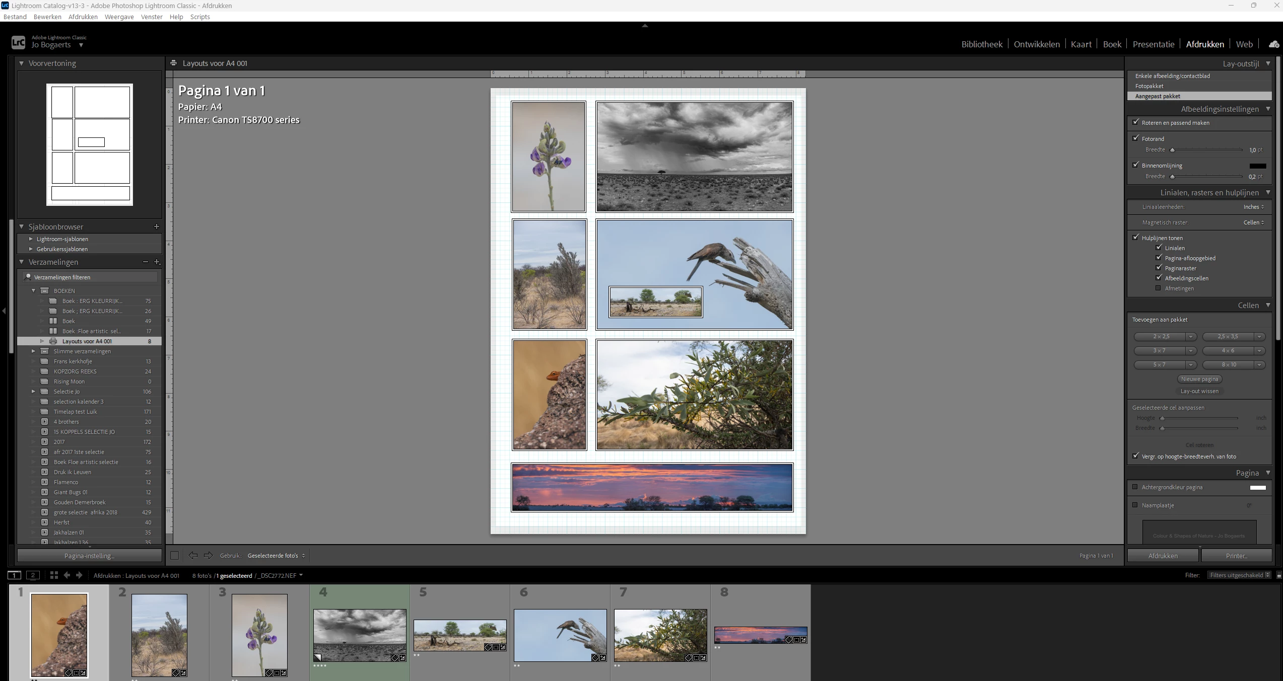 How can I make a layout for collages for printing and save them (for future use) in PS or LR ?