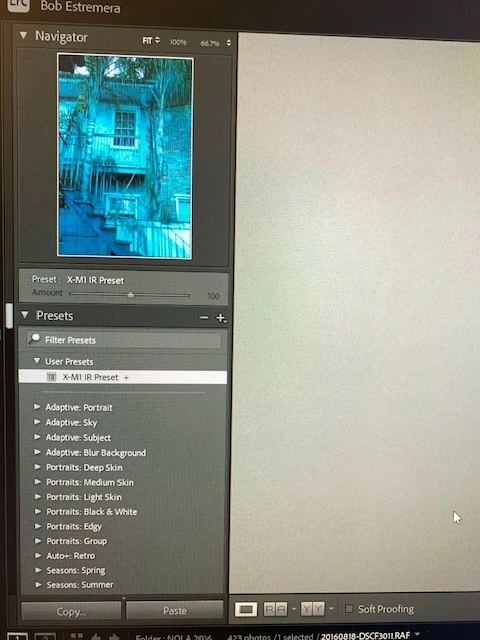 How do I get Lightroom to open files using the original color preset and ignore the IR preset?