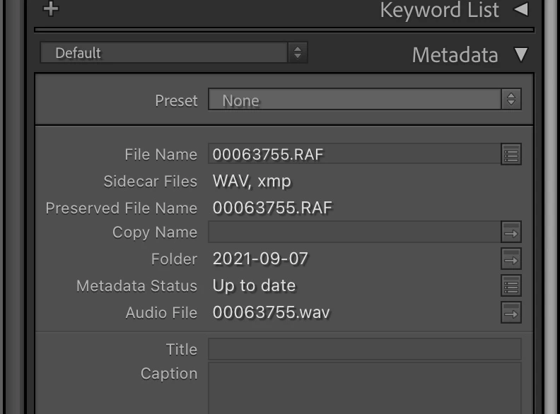 My Fujifilm X series cameras allow me to record a voice memo that is imported with the image file into Lightroom Classic. It's a separate WAV file that shows up in LR's metadata panel when present.