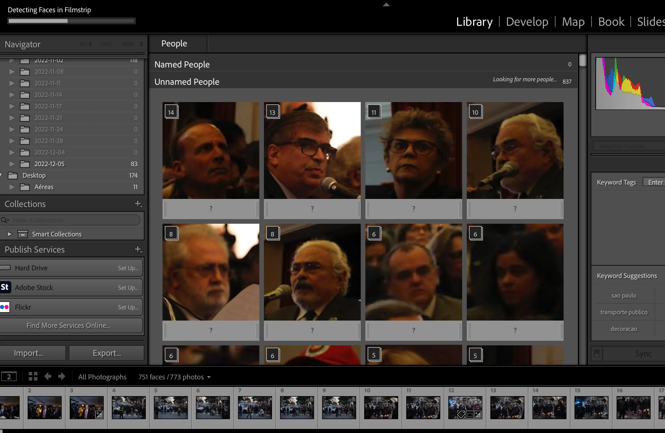 Guys, please, if anyone could help. I must've pressed something accidentally that made this face detection thing come and wanting to detect over 2000 faces in my pictures. Also, all I see on the editing desk are faces. The pictures I want to work on, only appear really small on the bottom part.