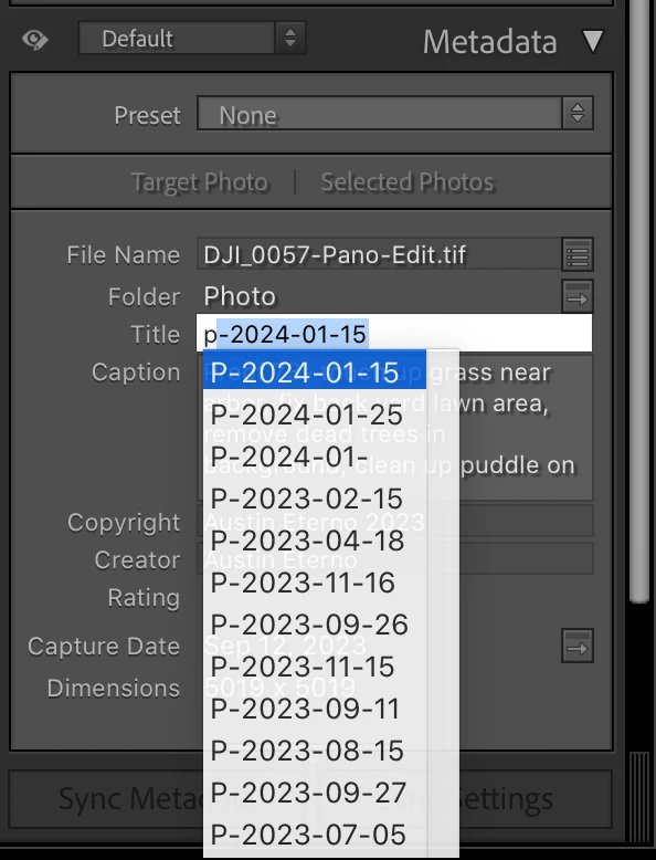 How can I turn off title suggestions inthe metadata tap when typing in titles for images in LrC? They just get in the way - it's really annoying and causes errors when entering similar titles. Example:
