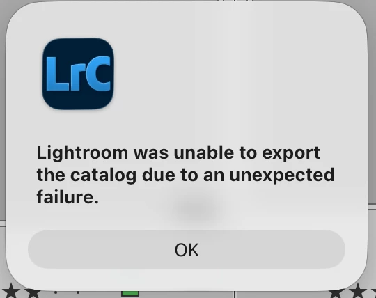 A few minutes after starting the export, the progress bar seems to freeze. About five hours after starting the export, the export process appears to die with the above message opening in its own window. I’m trying to export around 10,000 images. While the export is running, Lightroom Classic does not appear to be consuming a large amount of CPU or Memory.