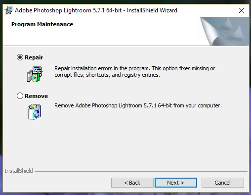 I choose "REPAIR" and "NEXT"