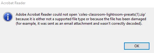I locate the preset download on my computer (it is a PDF!!!) and when I click to open, this is what I get.