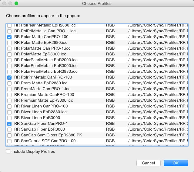 I have downloaded some ICC profiles from my print supplier's website and copied them into this folder
