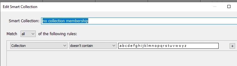 I have a very big catalogue, and basically all my pictures should be in at least one collection. But sometimes I forget to make an assignment after import, and then it is quite difficult to identify these pictures later. Also copies that are created by editing in external apps are not automatically assigned to a collection even if the original picture was assigned.