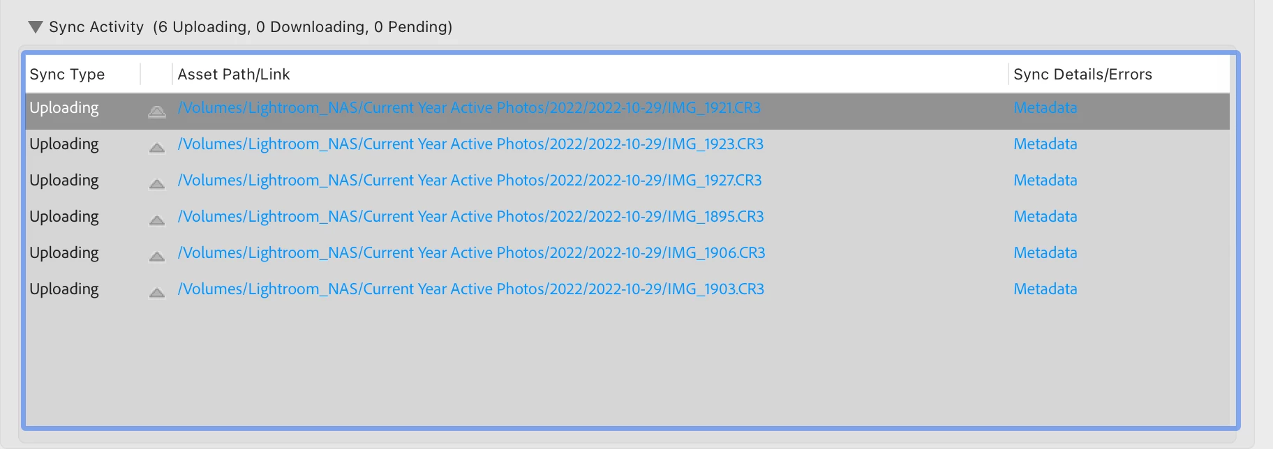 When investigating why it's not syncing, it's simply shows sync METADATA and the hover says Pending Masks: 1.