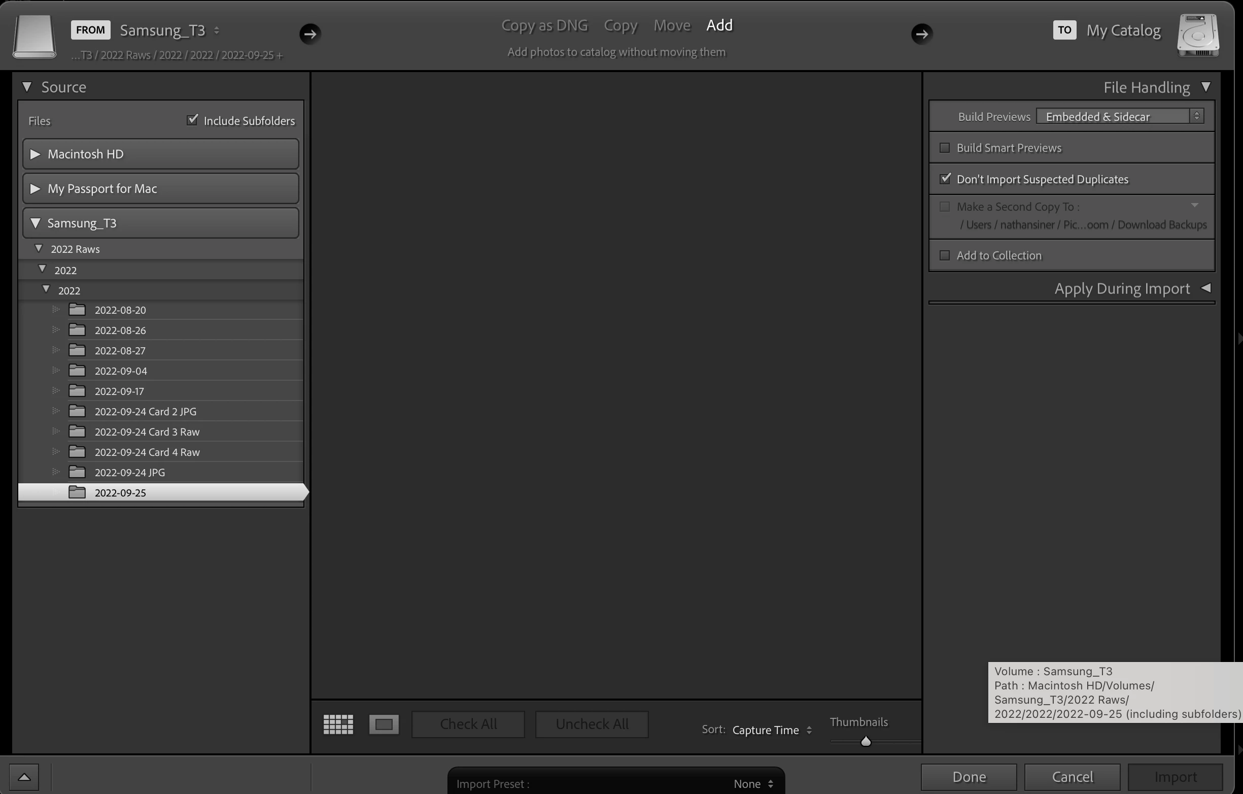 Import Issue* Source Folder Appears Grey and No Images Shown To Import