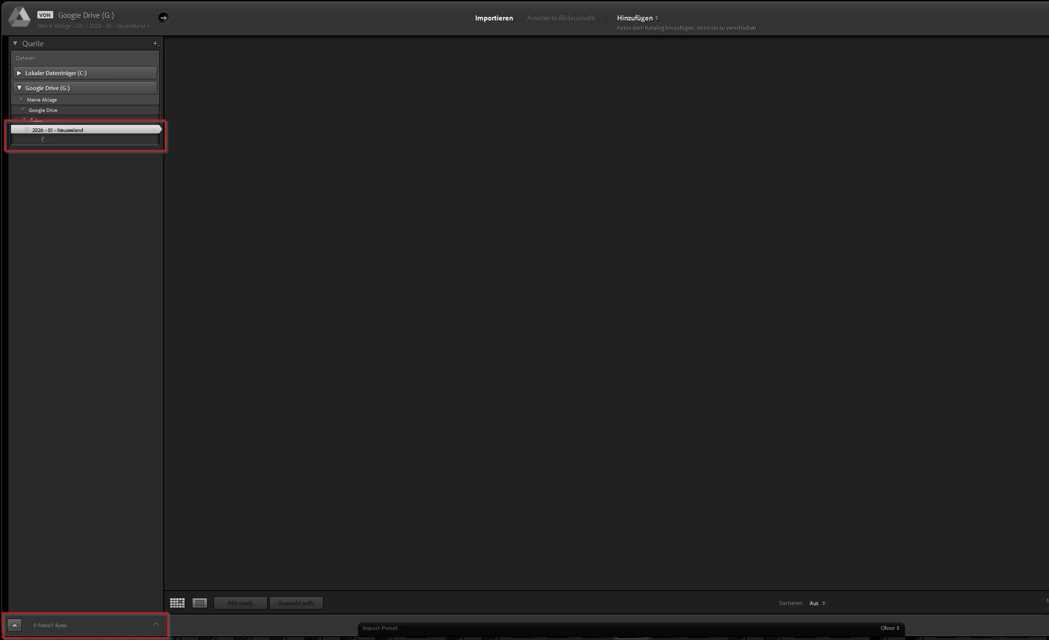 - Creating a new folder whith much smaller file size on Google Drive → LR Classic Import works fine