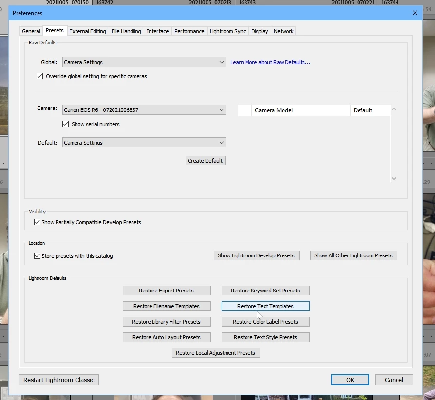 Once you've set a camera default that disables the lens corrections, are there further issues caused with your workflow?