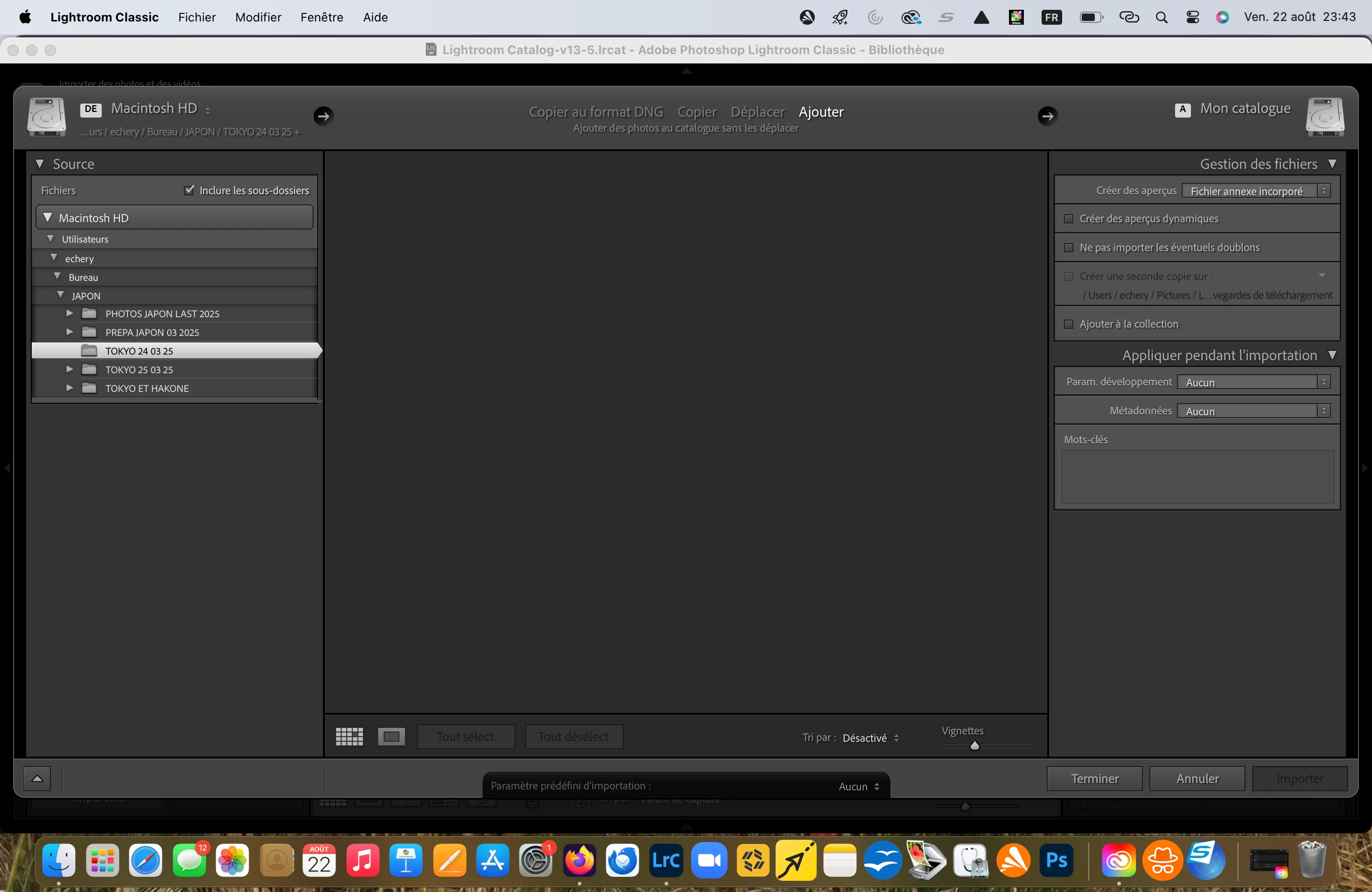 impossible d'importer les photos de mon disque dur Mac dans lightroom ,