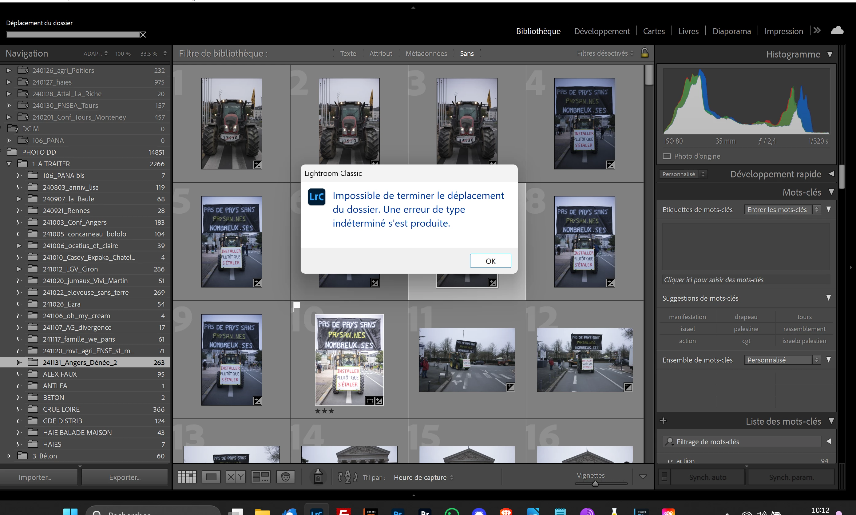 Je ne peux pas déplacer des dossiers dans la bibliothère Lightroom Classic " impossible de terminer le déplacement du dossier. Une erreur de type indeterminée s'est produite".