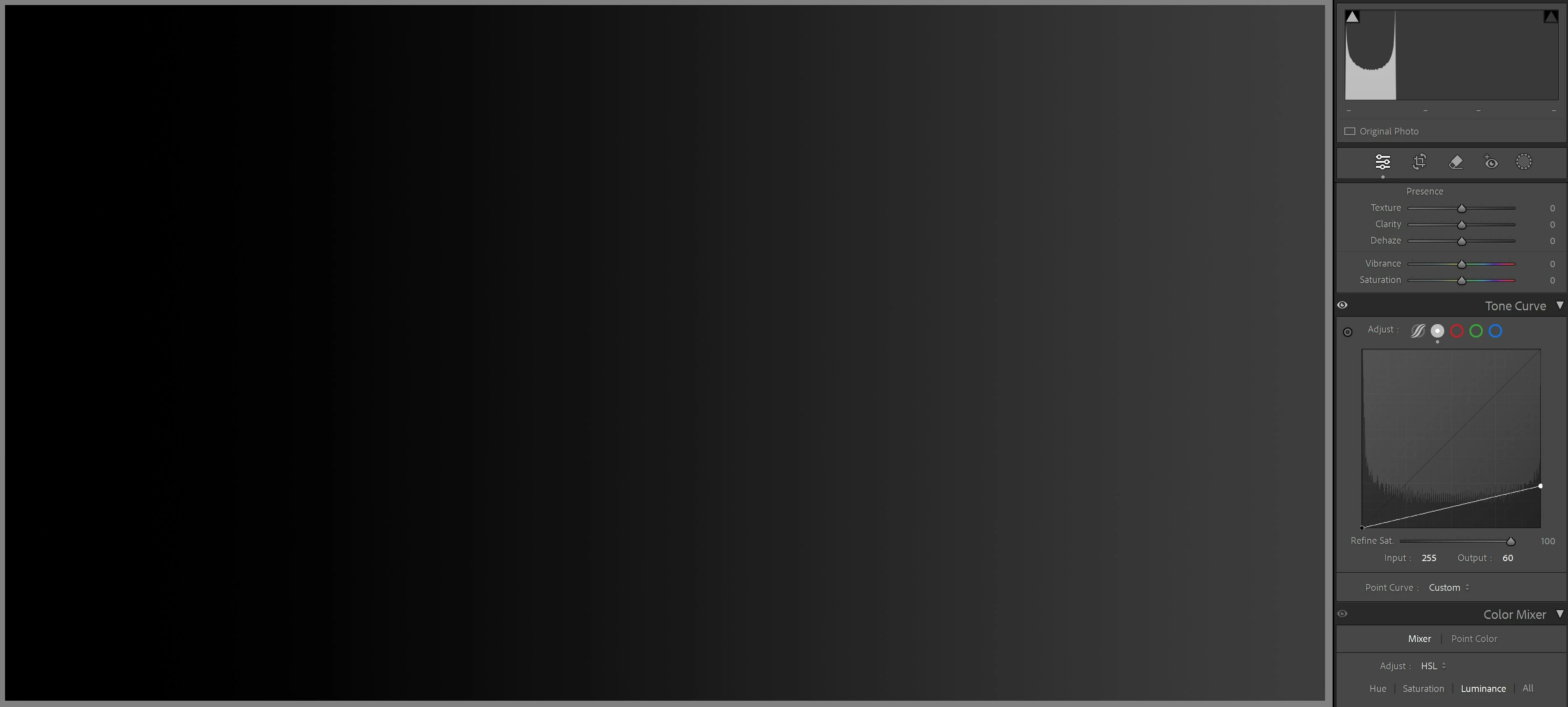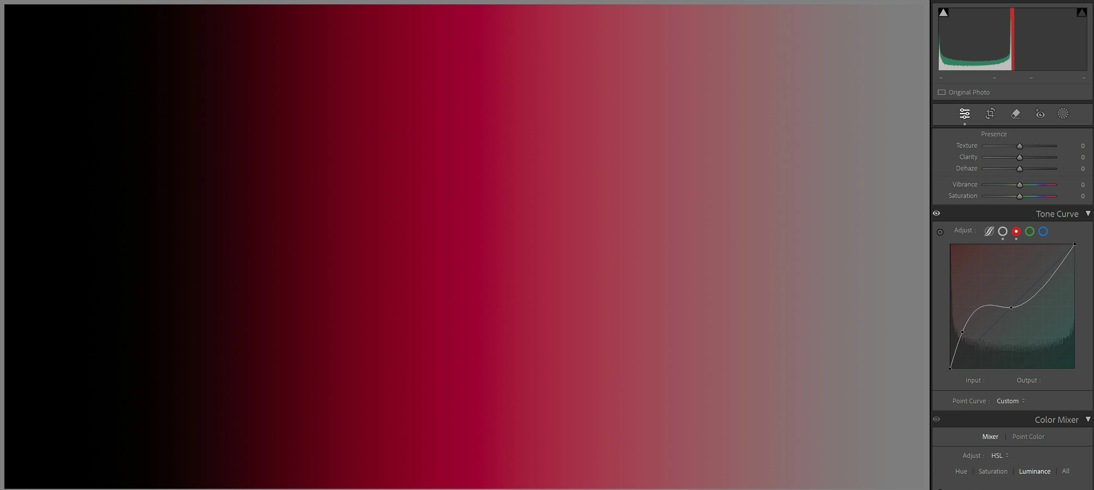 In Lightroom however, the new white point was not seen as whites by the red curve and it added color to it:
