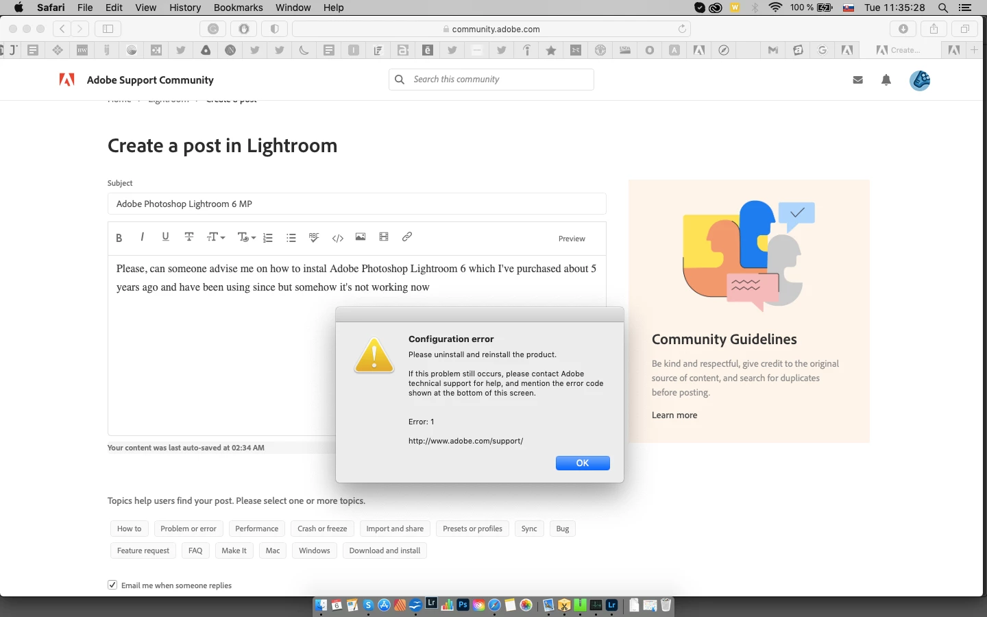 Please, can someone advise me on how to instal Adobe Photoshop Lightroom 6 which I've purchased about 5 years ago and have been using since but somehow it's not working now. I attach a screenshot of what shows up when I tried to open the app. I'm not aware of uninstalling the app.