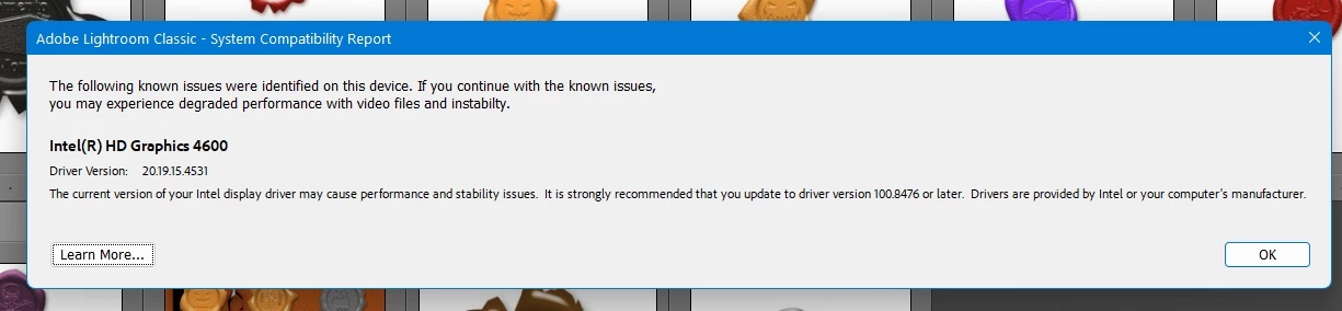 Since updating to LR 11.5 I get an error messgae that an intel graphics driver is needed for a 466 card...I don't have an intel card, mine is Nvidia. I have delted this in device manager and it keeps coming back. Any ideas? Thanks.
