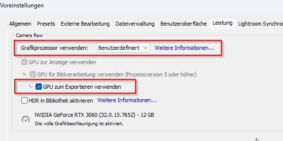 Gibt es irgendwelche Einstellungen, damit Lightroom die max. Performance nutzt?