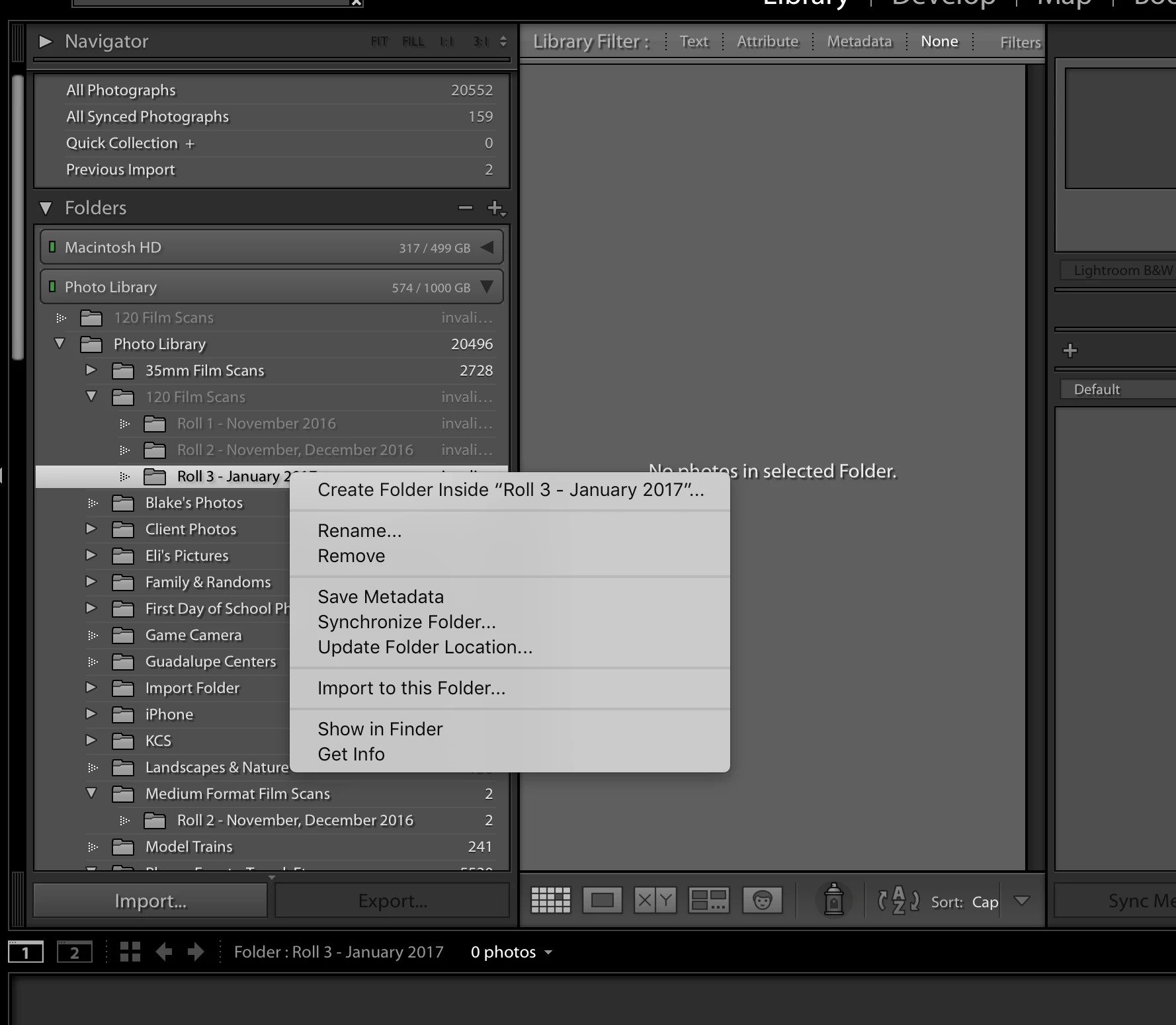 In error I did somethings to my photo library outside of Lightroom. I thought I got everything fixed but there is a folder and a couple of subfolders that show invalid. There is nothing in them that I need, I already have the stuff elsewhere and now I just want to remove/delete the folders. When I right click and try to remove nothing happens. I attempted to rebuild them on my drive and refind them but that does not work.