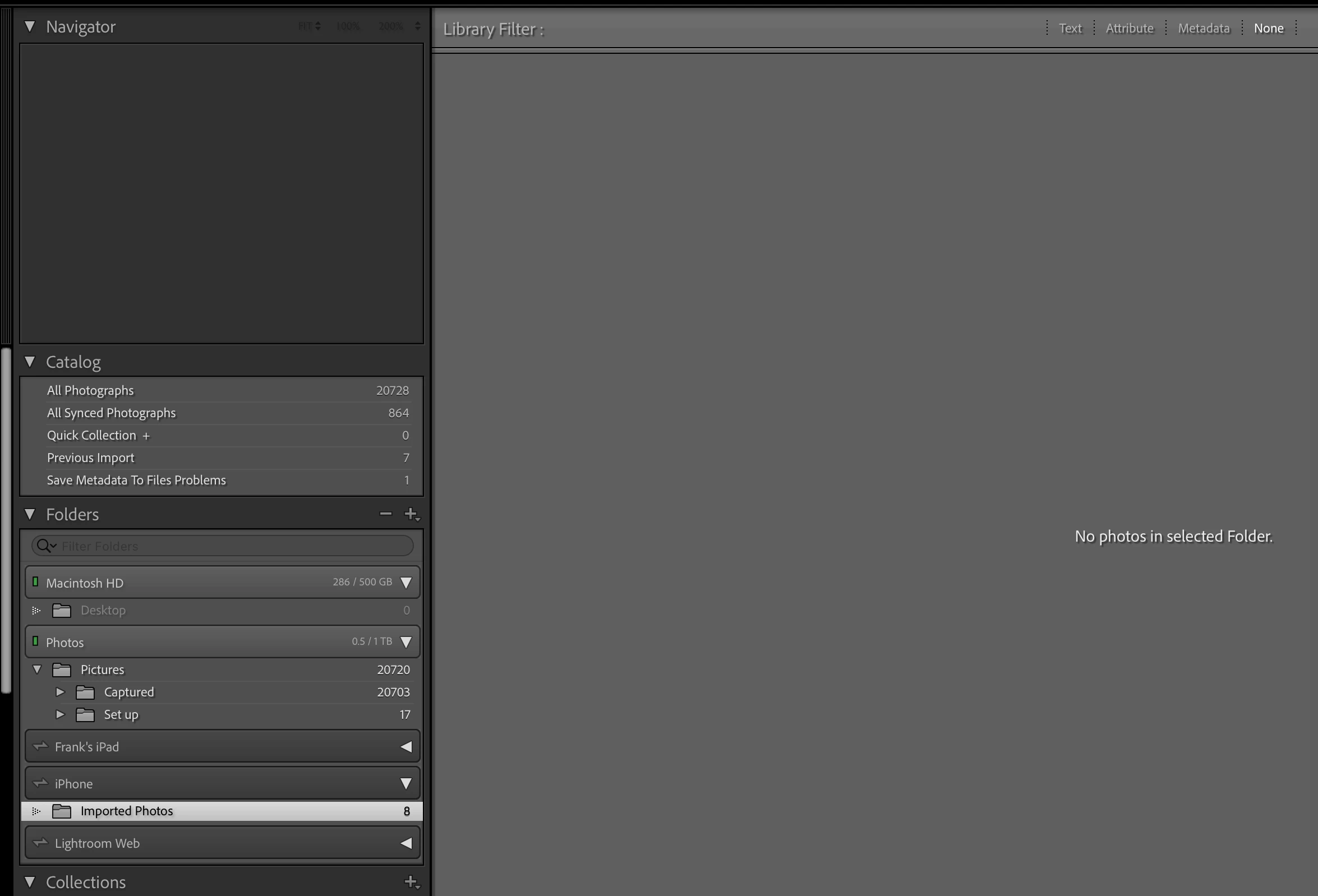 I have an unusual problem where LR Classic (v12.1) reports a number of photos (8 in the first screenshot) in the iPhone Imported Photos folder in the Folders panel on the left, but no display of corresoponding photos in the Grid view in the middle of the screen. If I right-click on that folder and select Show in Finder, it brings up the Mobile Downloads.lrdata folder (see 2nd screenshot), which does contain the images.